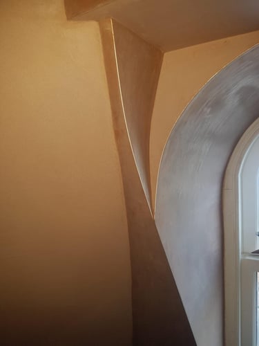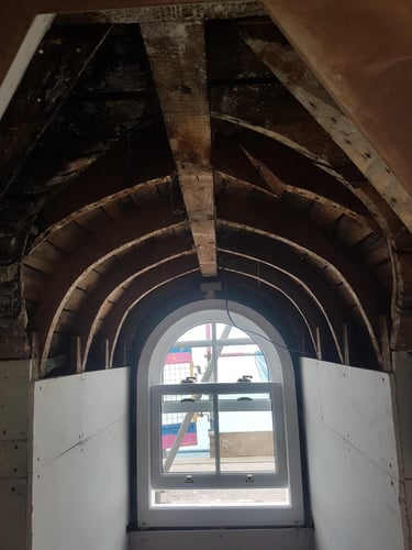 This loft conversion has a Gothic Window. This particular plastering project was mentioned by Chris Frediani on Fix Radio